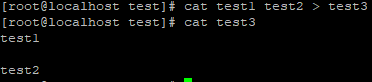 > test1 파일에는 test1, test2 파일에는 test2 내용이 들어가있음.