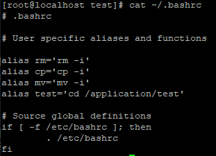 - 적용 후 test 별칭을 이용하여 해당 디렉토리로 이동하는 것을 확인할 수 있다.