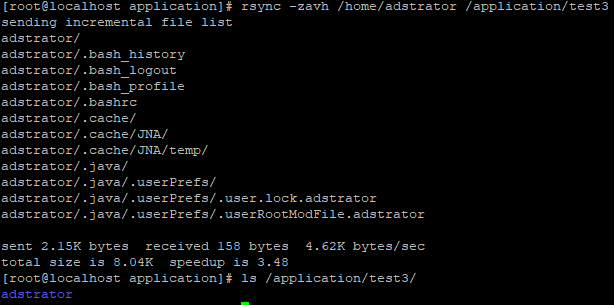 - /home/adstrator 디렉토리가 /application/test3에 복사(동기화)되었다.